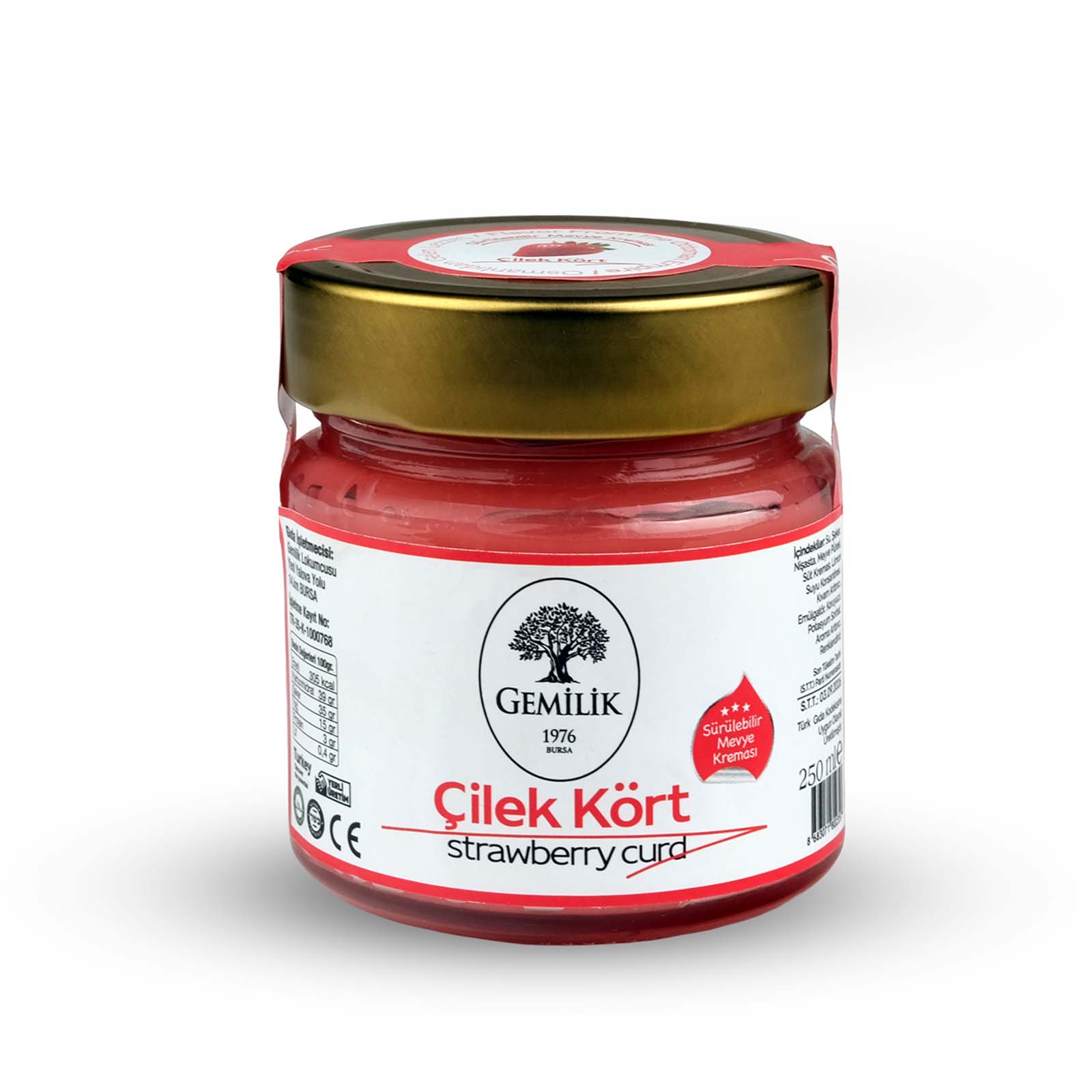 Gemilik Çilek Kört – Gerçek çilek aromasıyla hazırlanan 250 ml sürülebilir meyve kreması. Tatlılara, kahvaltılara ve pastalara yoğun meyve lezzeti katar.