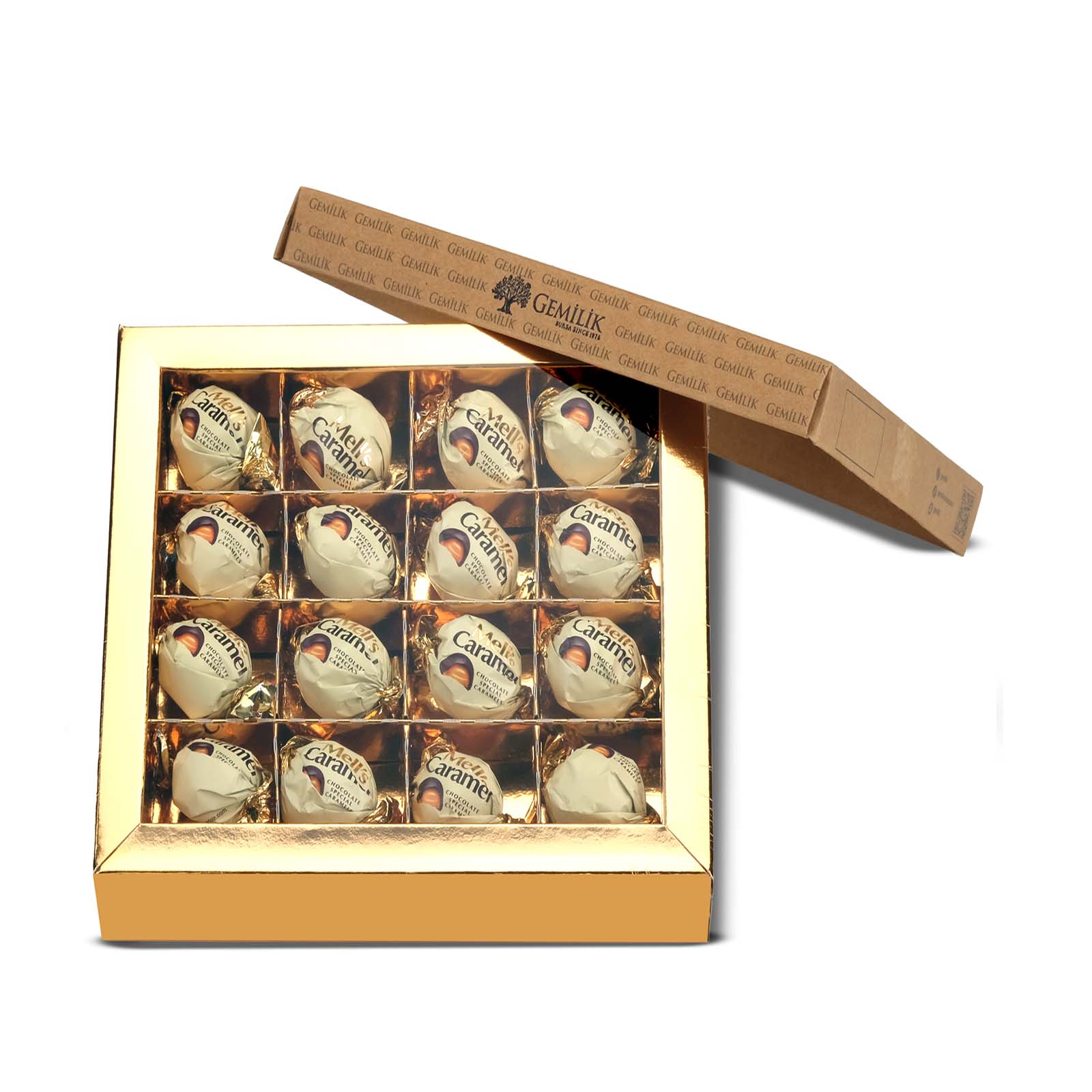 Yoğun karamel dolgusu ve kaliteli sütlü çikolata kaplamasıyla hazırlanan, şık kutusunda sunulan enfes bir lezzet deneyimi.